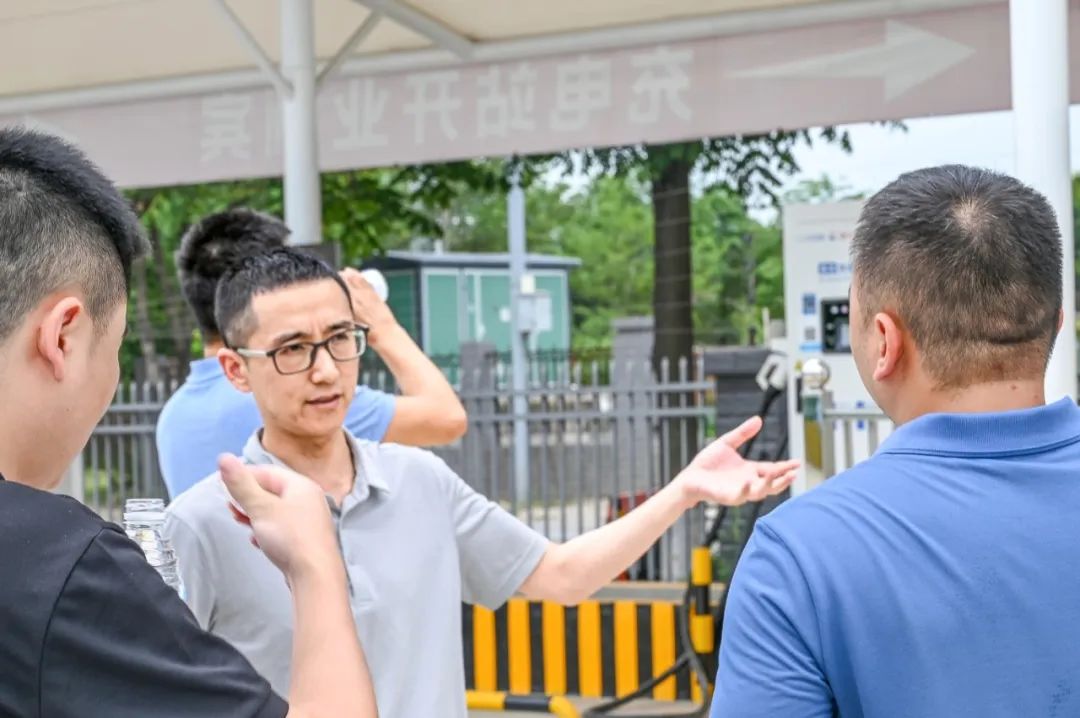 现场来宾先后参观了蔚宇电气产品展厅和充电桩生产车间等地。英杰电气董事长王军与蔚宇电气销售副总经理邓斌勇,向来宾介绍了蔚宇电气所生产的数款充电桩以及相关核心部件。随后,现场来宾前往英杰电气光储充综合一体化能源示范站,现场实地考察了解英杰电气专利技术——光储充直流母线系统的直接应用。